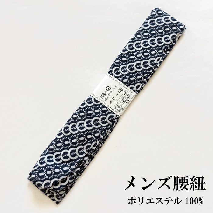 - メンズ 柄腰紐 日本製 着付け小物 腰ひも こしひも 男性 紺 着物 浴衣 長襦袢 ポリエステル