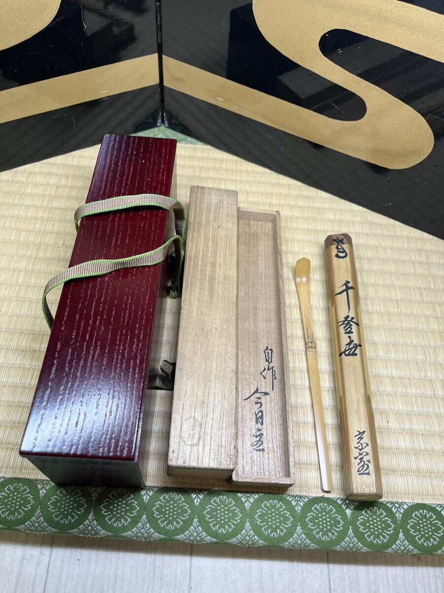 - 淡々斎 自作茶杓 銘 千登勢 共筒共箱 黒田正玄下削 塗箱 二重箱