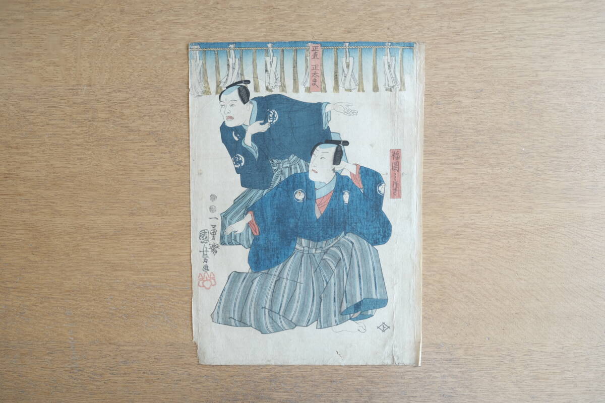 > 歌川国芳 《役者絵 二人図》 大判錦絵 一勇斎国芳画 浮世絵 木版画 oban tate-e (江戸後期)
