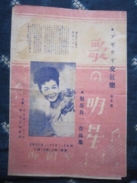 - 笠置シズ子/「ブギウギ交狂楽・歌の明星」・服部良一作品集★名古屋御園座プログラム★昭和20年代★笠置シヅ子SP盤