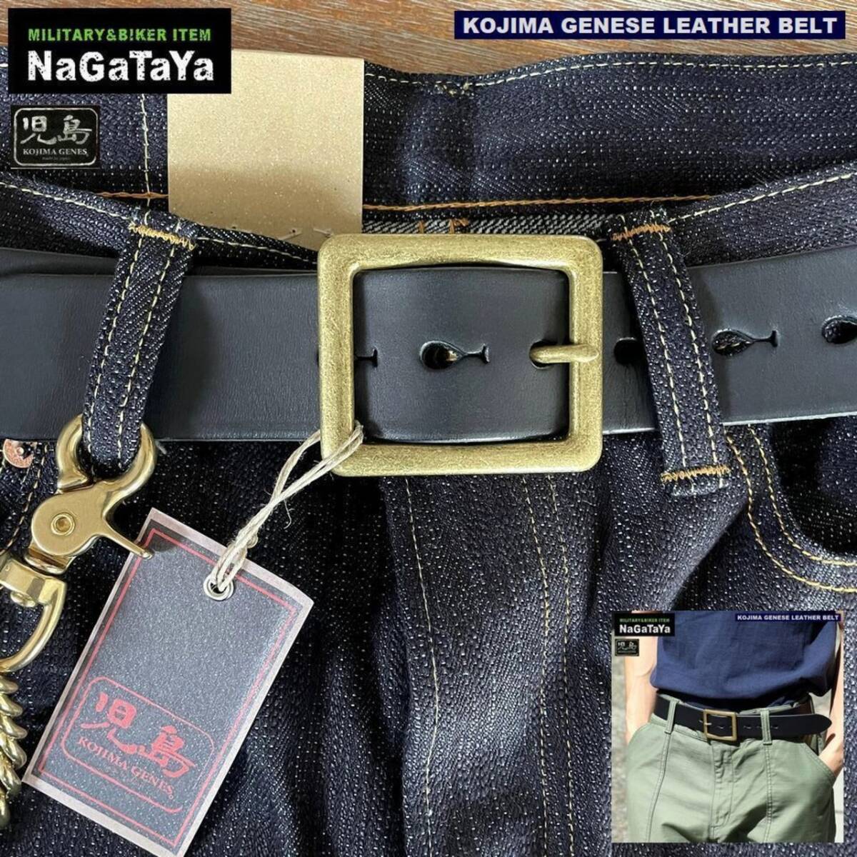 - 児島ジーンズ KOJIMA GENES レザーベルト ゴールドバックル 4mm レザー 牛革 フリーサイズ 107cm RNB9049 MADE IN JAPAN 日本製