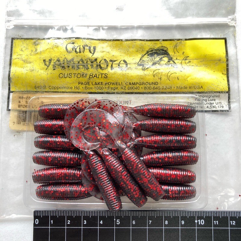 > 814204 ゲーリーヤマモト 4インチ シングルテールグラブ 15本 GARY YAMAMOTO #134 スモーク/レッドフレーク