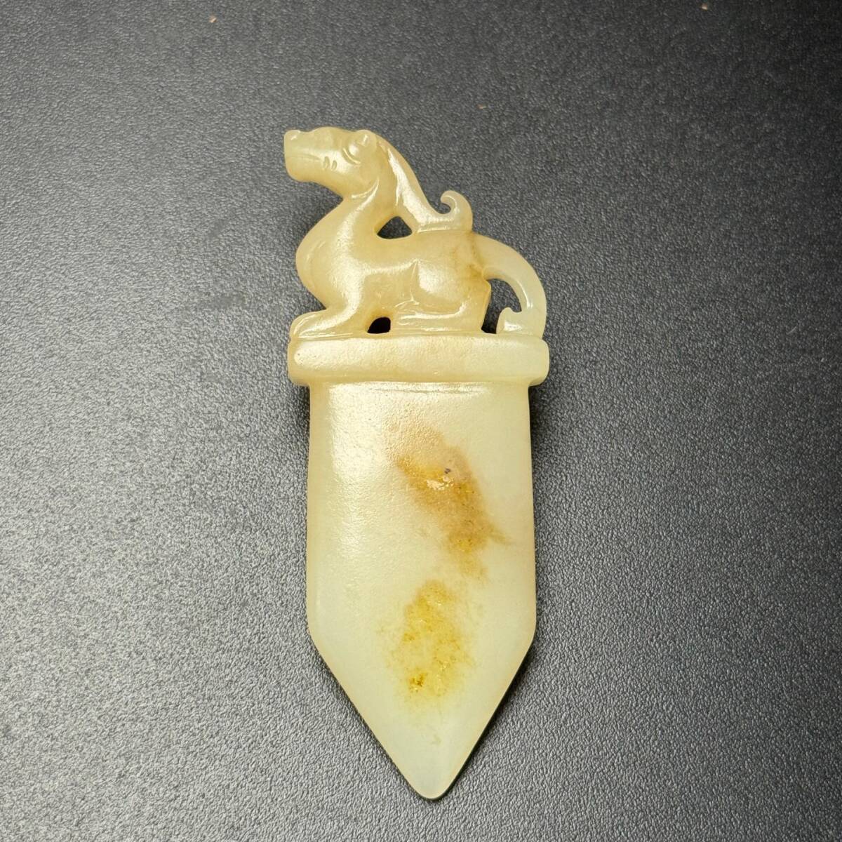 - 蔵友旧蔵出 和田玉製 細密彫 福壽如意 瑞獣匕首 玉質細膩 希少珍品 貴重品 置物 古賞物 中国古玩 中国古美術品