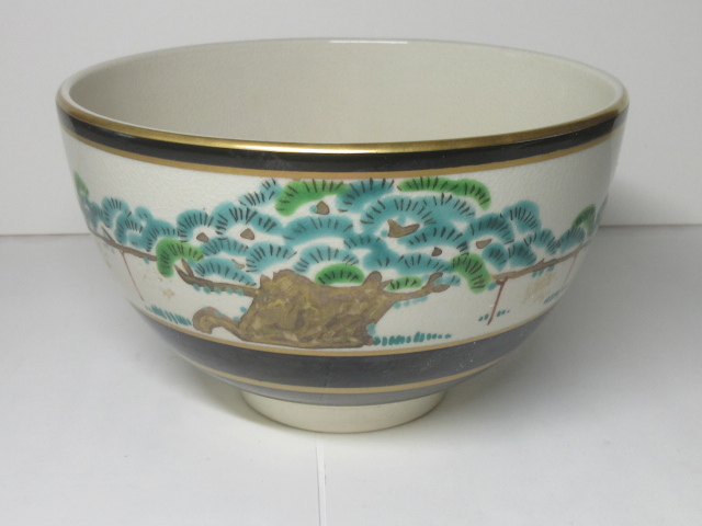 - ★京焼「寿楽」金彩色絵茶碗★松文・茶道具★焼き物・完品★骨董・レア・ビンテージ・レトロ・アンティーク・コレクション・美品★