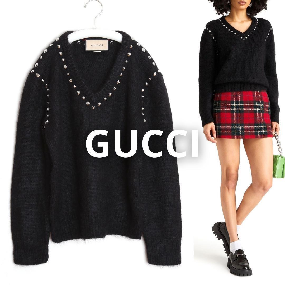 - GUCCI 23SS 新品 スタッズ装飾 モヘアニット セーター XS 国内正規品 Vネック ウール混 カーディガン FENDI/VALENTINO関連 ウィメンズ