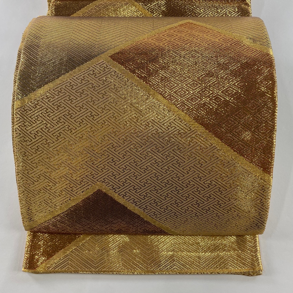 - 袋帯 美品 秀品 証紙 関西仕立て 幾何学模様 有職文様 箔 金色 六通 正絹 【中古】