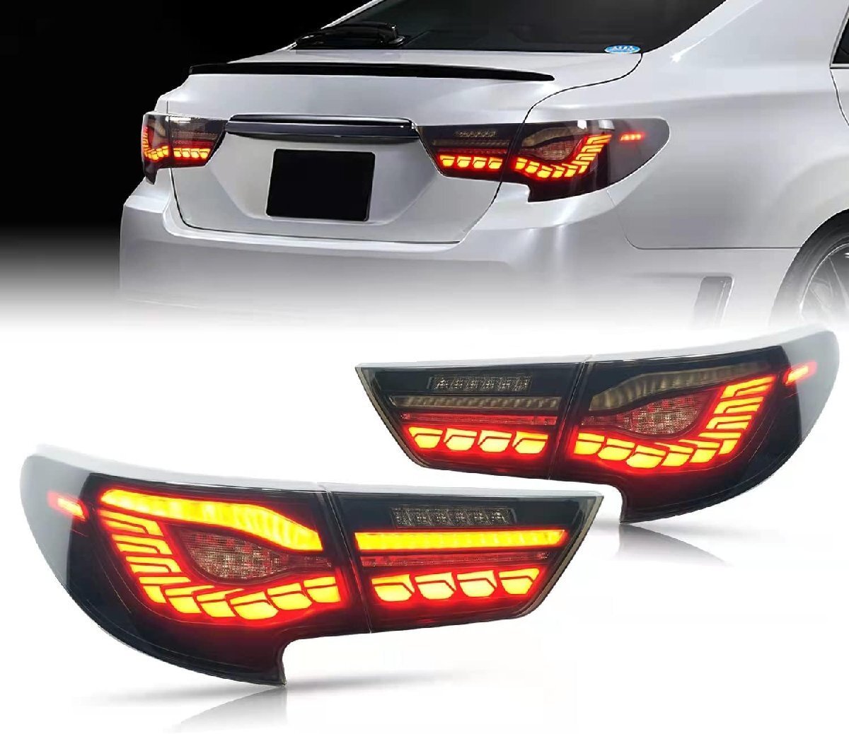 - トヨタ マークX テールランプGRX130 GRX133 GRX135型テールライトドラゴンスケール ベンツ スタイル全LED流れるウインー スモーク2012-2020