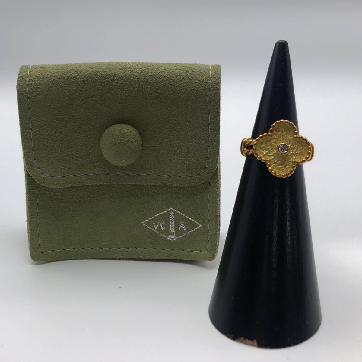 > Van Cleef&Arpels 指輪 46【中古品】ヴァンクリーフ&アーペル ヴィンテージアルハンブラ 6号 K18YG 1Pダイヤモンド
