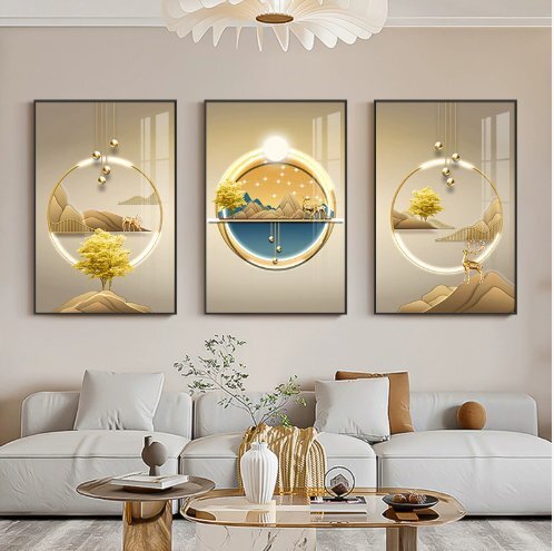 - 北欧の居間の装飾の絵三連ソファの背景の壁の掛け絵現代のシンプルな大気のレストランの壁画寝室の壁の絵です