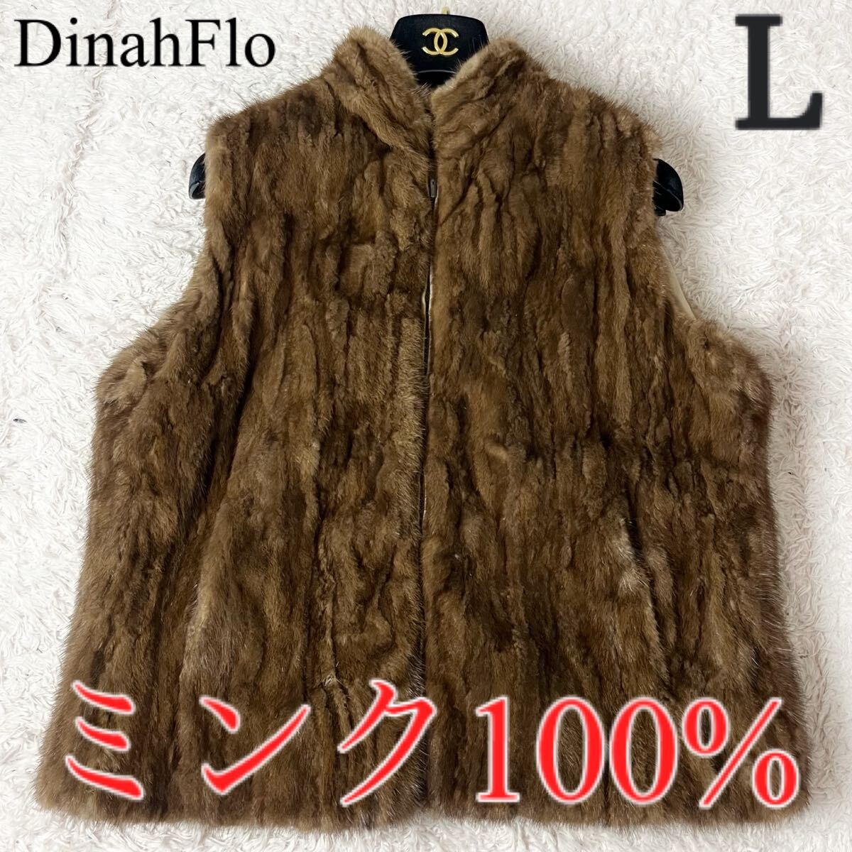 - DinahFlo ダイナフロー ミンク ジレ ファーベスト リアルファー 毛皮 大きいサイズ 裏地シルク 絹 ブラウン 茶色 L