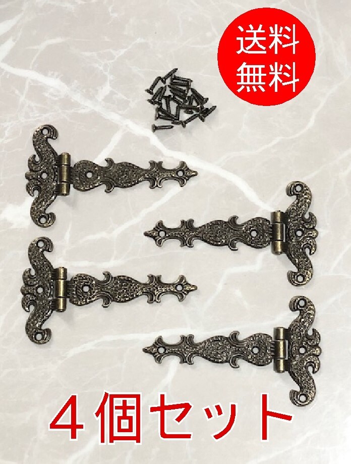 - 【4個セット】■蝶番 金具 CO-08■アメリカン 丁番 ブロンズ 扉 おしゃれ 建具 ヒンジ 金物 レトロ 蓋 ヴィンテージ