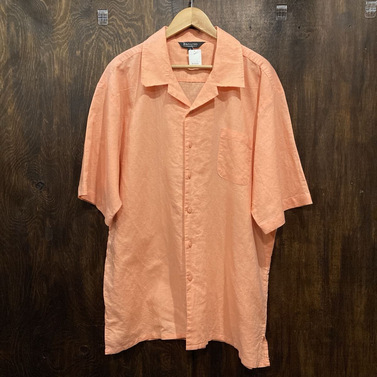 > アメリカ古着 BAGAZIO 半袖 オープンカラーシャツ USA古着 ラミー素材 開襟シャツ リネンシャツ
