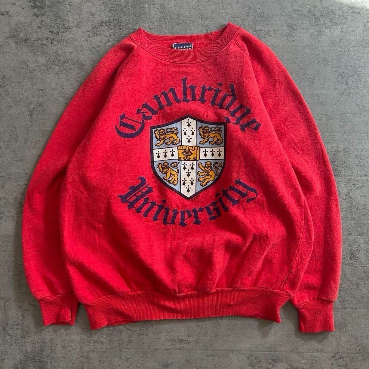 - 80年代 アメリカ 古着 ラグラン カレッジ スウェット トレーナー ケンブリッジ大学 ヴィンテージ レッド メンズ M相当 / 3061