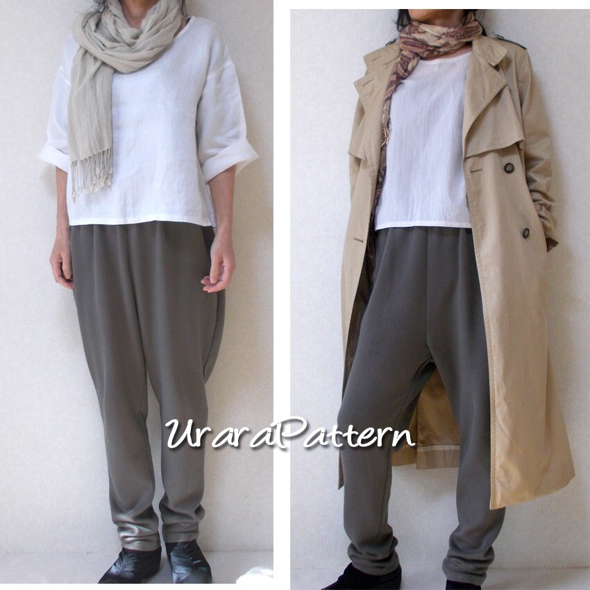 - 即決♪張り合せ不要!型紙 大人 テーパードゆるパンツ フリーサイズ