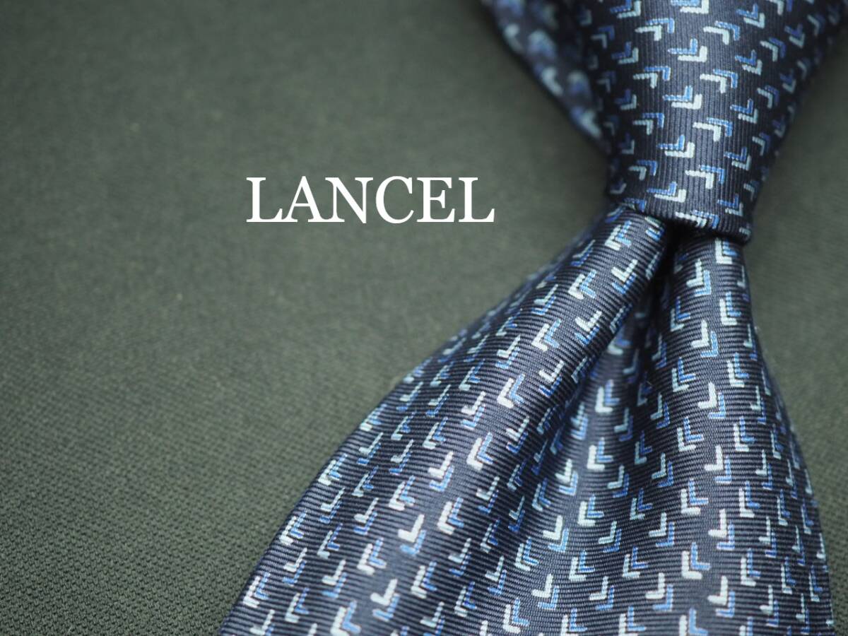 - 美品【LANCEL ランセル】 F1186 ネイビー SILK ブランド ネクタイ 古着 良品