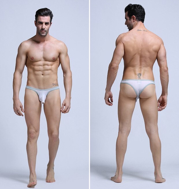 - 160-22-9 シームレス 勃起 サオ付き ペニス ブリーフ ショーツ【ホワイト,M】メンズ 男性 下着 パンツ Gストリング エロ パンティー .1