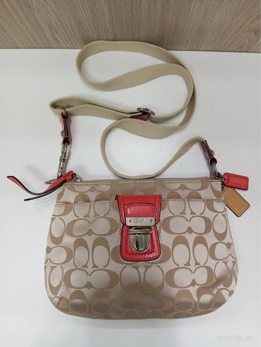 - 【中古品】COACHコーチ シグネチャー ショルダーバッグ キャンバス×レザー 肩掛け バッグかばん 現状品