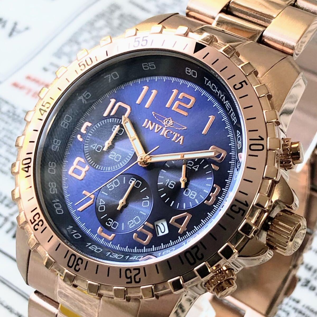 > #3718【お洒落な青文字盤】メンズ 腕時計 インビクタ Invicta クォーツ Quartz 動作良好 ブルーダイヤル インヴィクタ クロノグラフ 防水