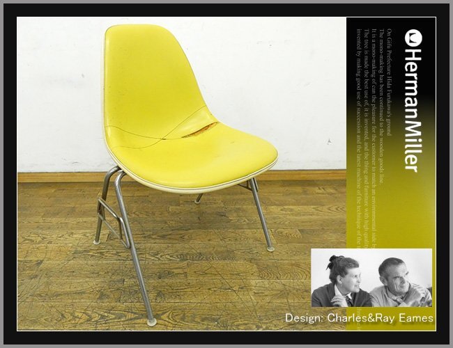 - ◆FX903◆ビンテージ◆HermanMiller ハーマンミラー◆イームズ◆ナウガレザー◆サイドシェルチェア◆スタッキングベース◆黄色系◆Eames