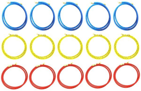 - お買い得15本セット【本州・四国・九州 送料無料】(赤5本・青5本・黄5本)チャージングホース5/16”Fメス(ムシ押付)×5/16”Fメス 150cm