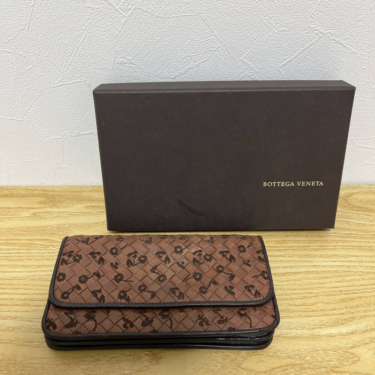 > 本物 ブラウン レザー 編み込み 長財布 ボッテガ BOTTEGA 財布 革