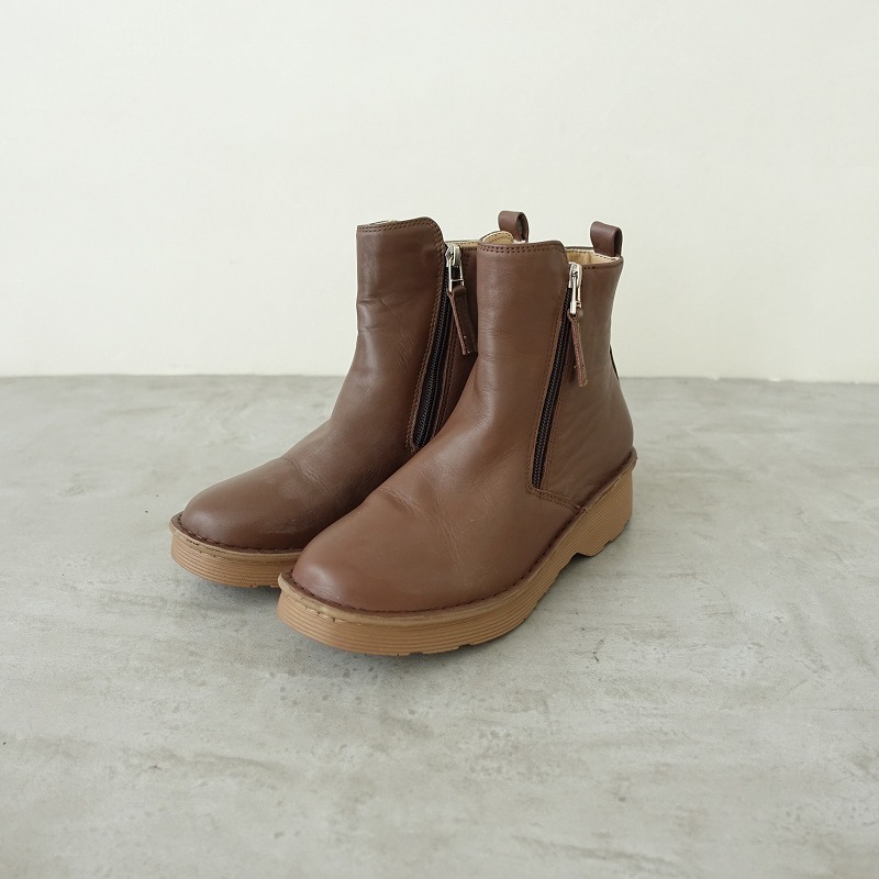 - 【定価1.7万】イングプラス ing PLUS+ *サイドファスナーショートブーツ 24/24*レザー皮革ブラウン0725(sh7-2507-183)【61H52】