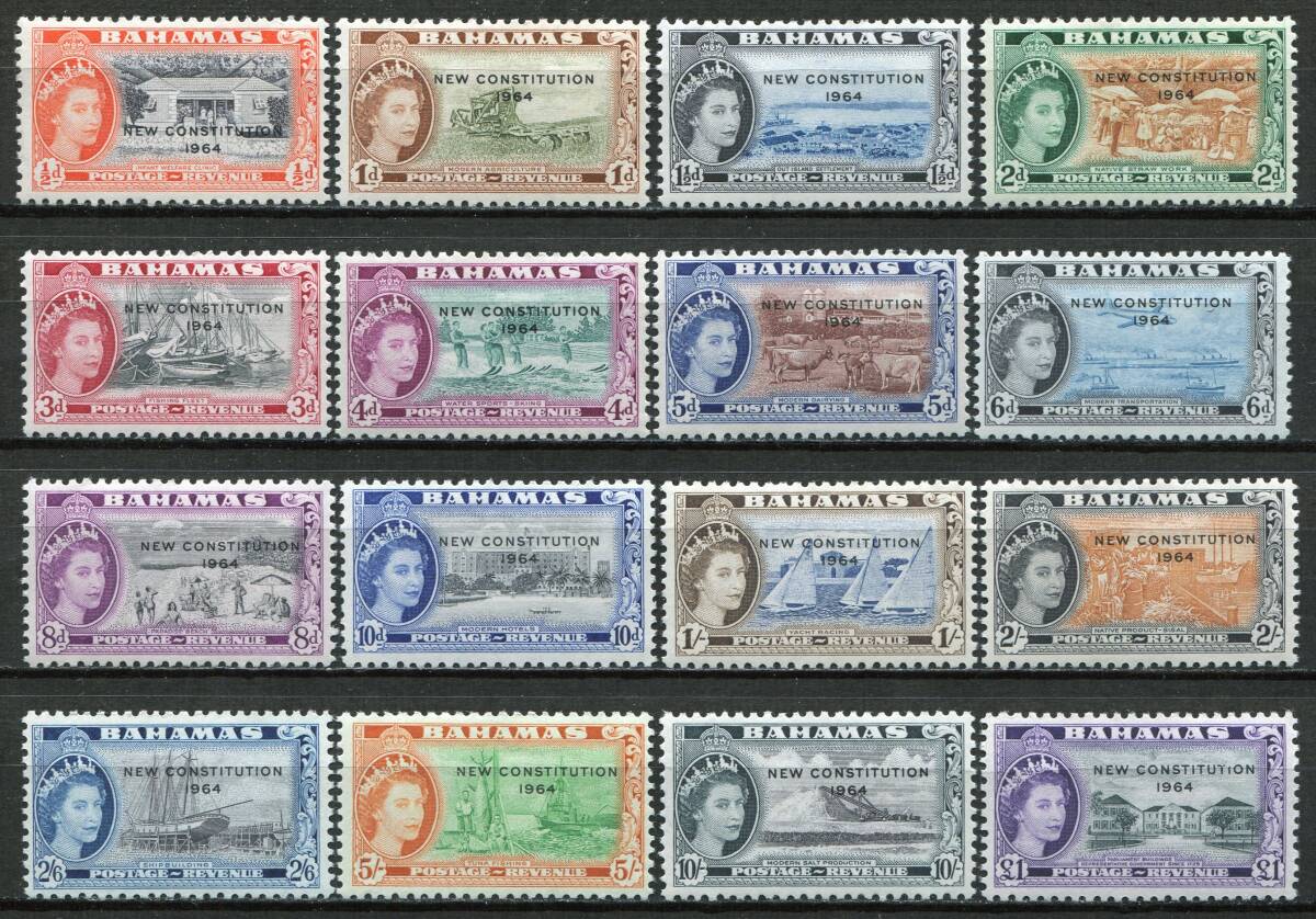 - 英領ロングセット バハマ SC:185-200 1964年 エリザベス女王 加刷 16種完 未使用 NH z9435