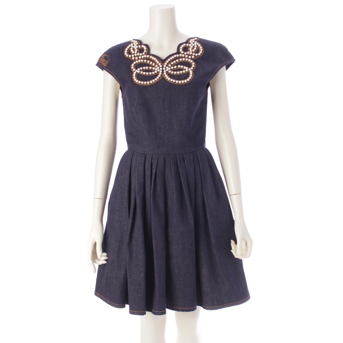 - フェンディ 17年 デニム パール付き ワンピース FLD505 インディゴ 36【中古】