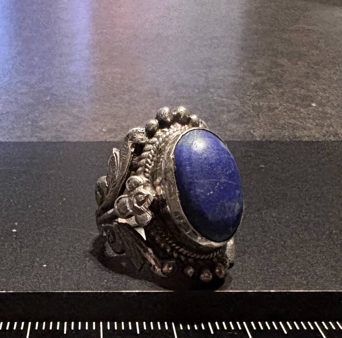 - デッドストック希少アンティーク銀シルバー製リング#14号オーバル型ラピス ラズリ楕円形ビンテージ石デッド950silver925sterlingジュエリー