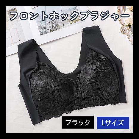 - シームレス フロントホックブラ L 黒 見せブラ 脇高 盛ブラ ノンワイヤーブラ