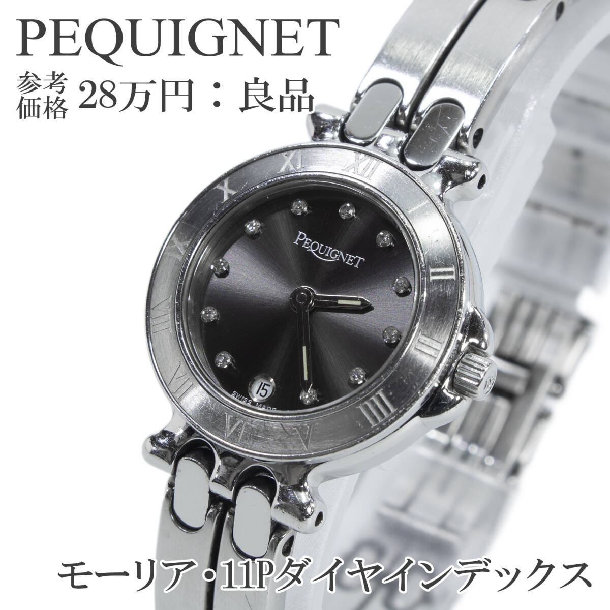 - 送料無料 ペキネ 腕時計 レディース モーリア グレー シルバー 11Pダイヤモンド ローマンベゼル 小さめ ロゴ ブランド ドレスウォッチ X306