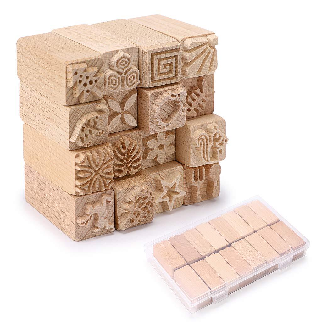 - Sumnacon 陶芸 粘土 道具 印花 型 木製 陶芸用品 粘土印花ツール ハンドローラー 違い模様 (16本セット)