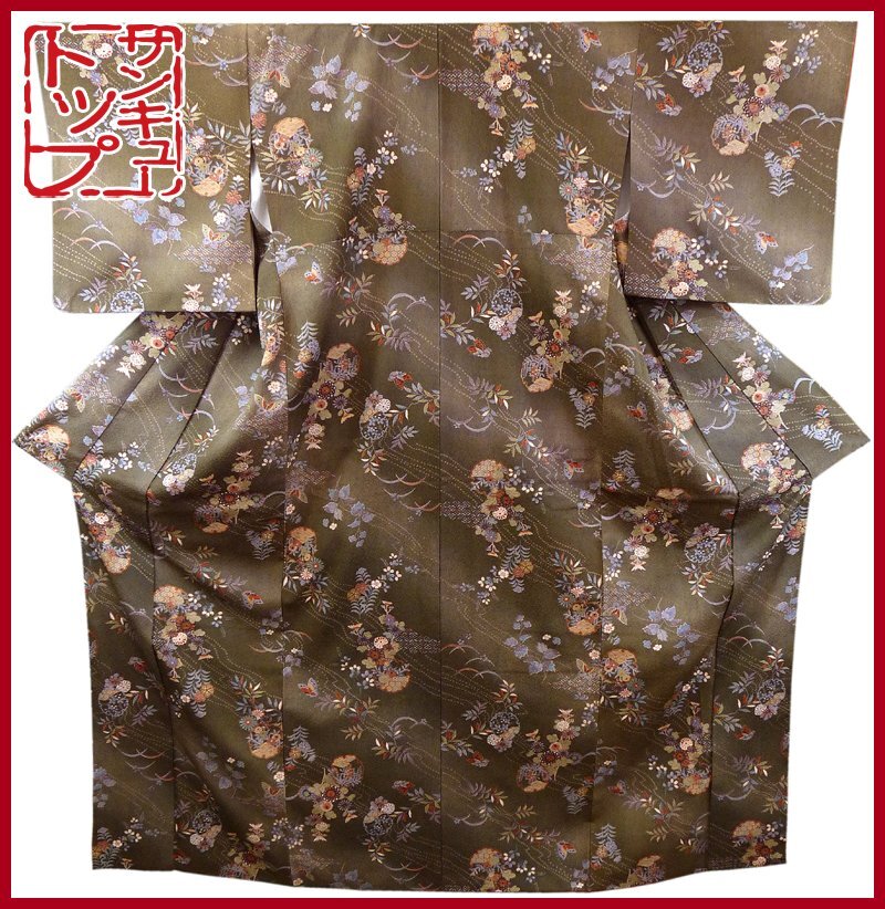 > 【店頭価格13000円の品 在庫処分 大幅値下げ】☆質:39トップ 着物館 758 小紋 花丸蝶々文様 中古 趣味の場などに・・・