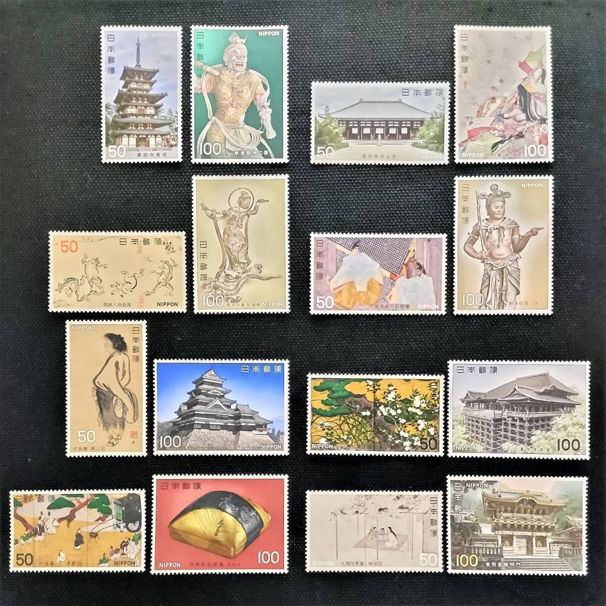 - [25081707]【第2次国宝シリーズ 第1集~第8集】単片全16種 耳紙付 第二次国宝「薬師寺東塔 金剛神立像…」1976年~1978年発行 額面1,200円