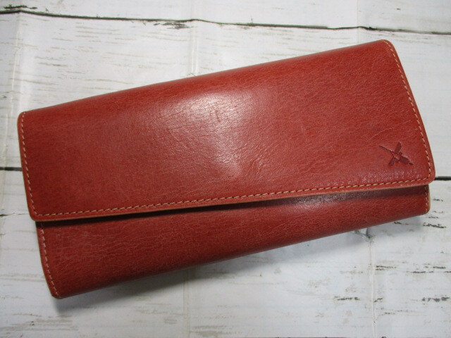 - 訳アリ 新品 財布 長財布 三つ折り アインソフ ブランド レディース カード入れ18枚 本革 イタリア製ベジタブルタンニンレザー レッド
