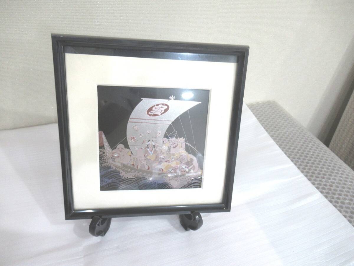 > 七福神 宝船 縁起物 インテリア 壁掛け 額縁 金色 銀色 「エスケー化研 創業50周年記念」 約24.5×24.5㎝ 正方形 置物