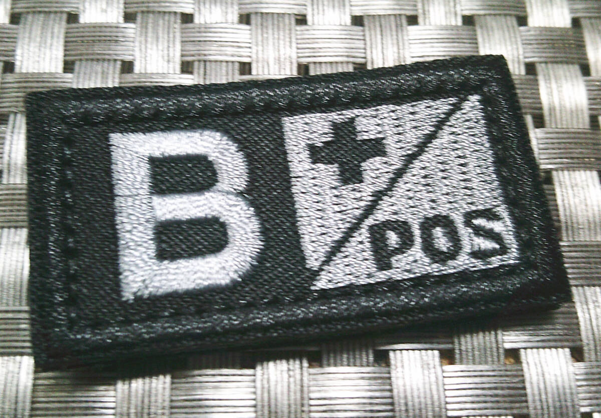 - 《VC黒銀US血液型》銀黒VC◆新品 血液型 B型 刺繍ワッペン『ベルクロ マジックテープ』アメリカ サバゲー■釣りアウトドア登山フイッシング