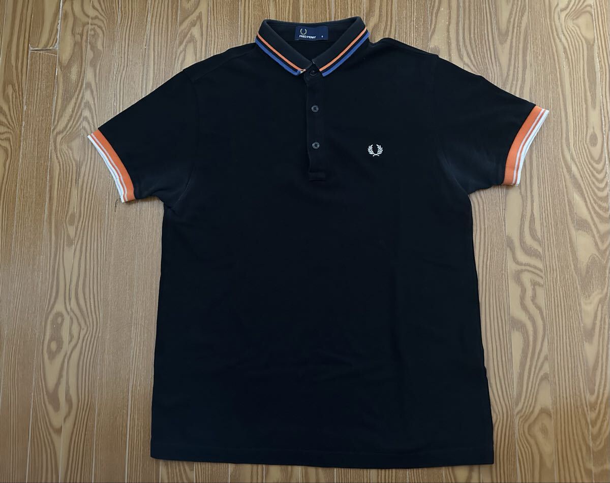 > FRED PERRY ポロシャツ ブラック (ブルー×オレンジ) Sサイズ イギリス イングランド フレッドペリー スカパラ ROCK SKA Punk RUDE Mods
