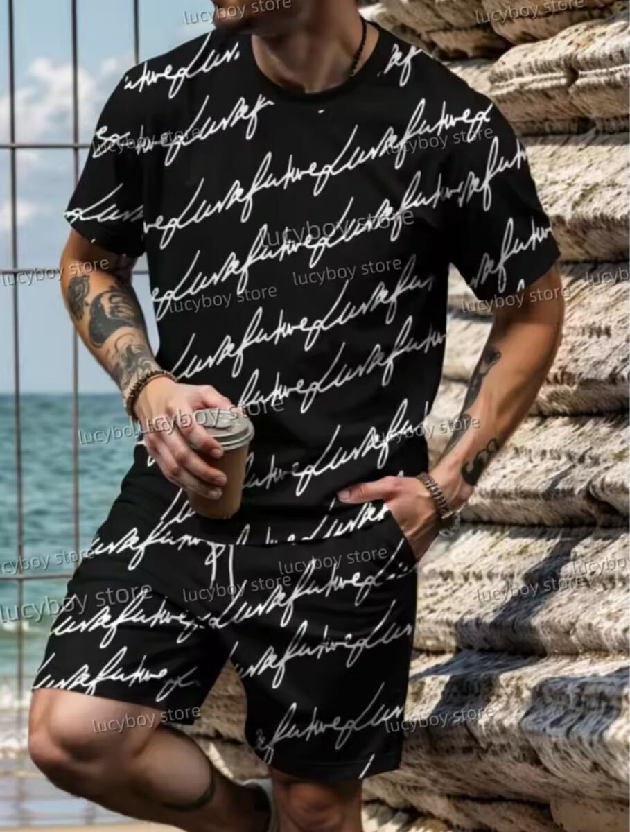 > メンズ セットアップ Tシャツ ブラック短パン 半ズボン 派手 高級 ブランド 上下セット 柄 高見え おしゃれ ラグジュアリー グレー シンプ
