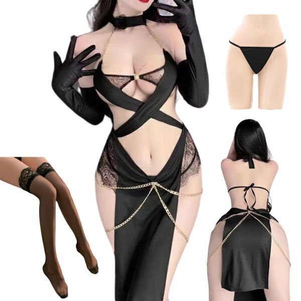- 【送料無料】 セクシー コスプレ ランジェリー 下着 レディース ベビードール チャイナ Tバック ドレス グローブ ストッキング 異国 黒