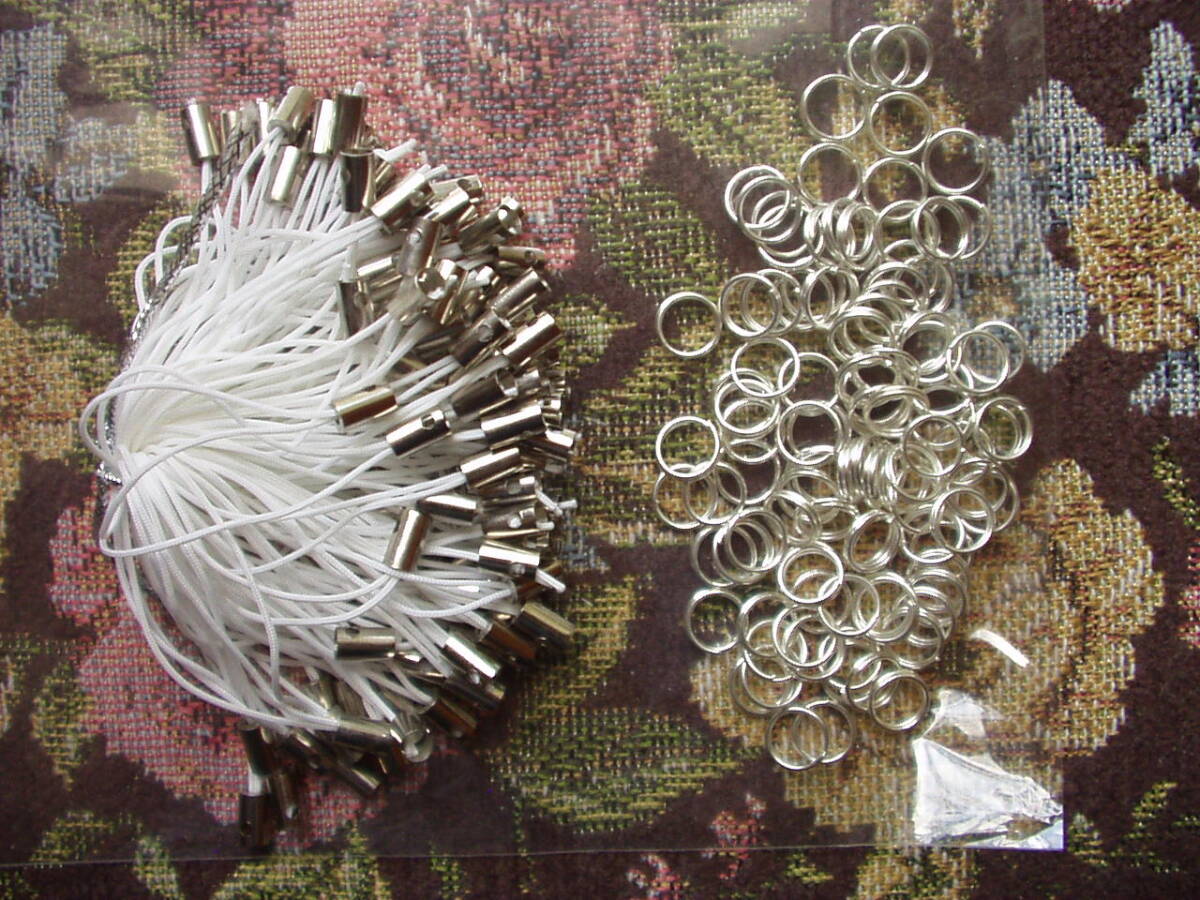 - 手芸用品 未使用 白 金具シルバー色 ストラップパーツ100本 2重丸カンセット