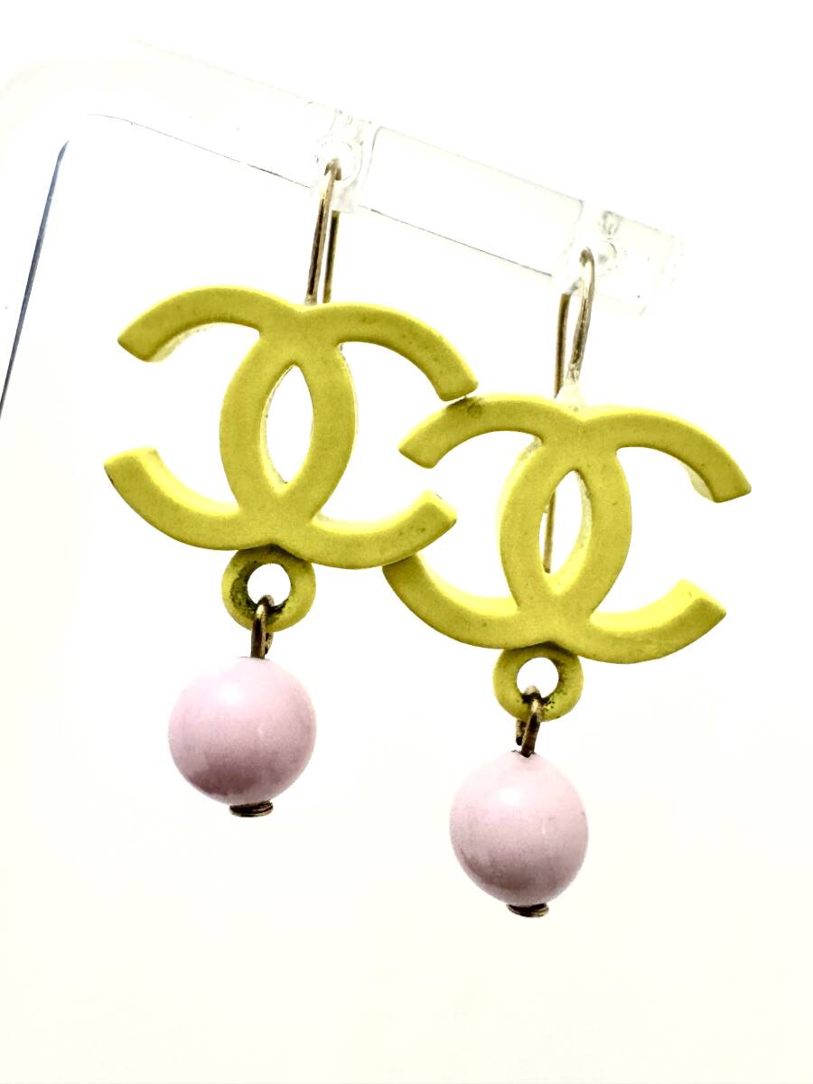 > 7H1714【本物保証】シャネル ピアス スイング フック ココマーク カラーストーン イエロー ピンク 03S CHANEL