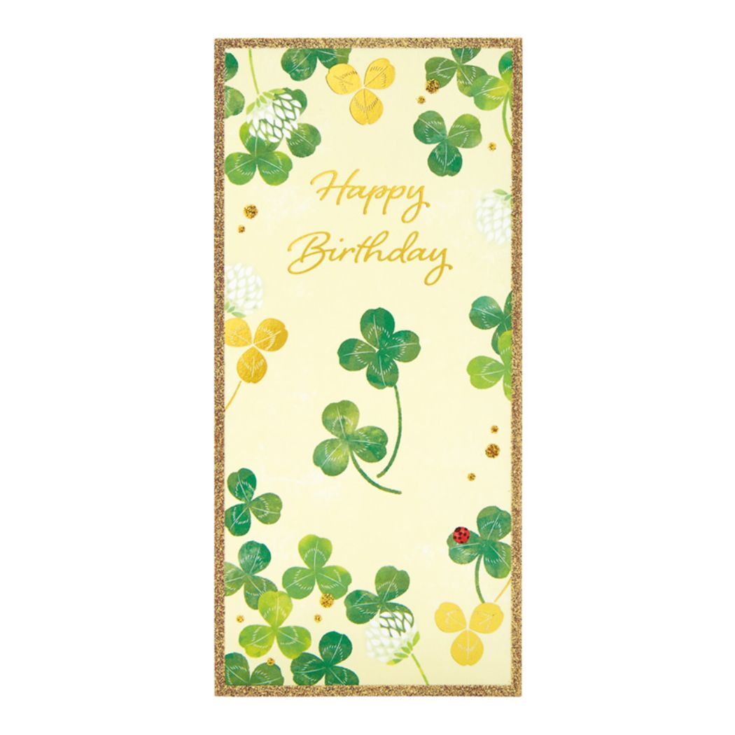 - グリーティングカード バースデーBD143-3 二つ折りカード クローバーとテントウムシ サンリオ