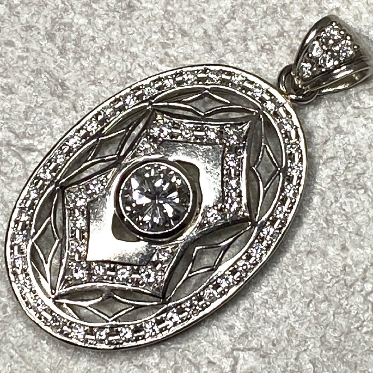> ☆【KJC】鑑別所付 Pt900 ダイヤモンド 中石1.025ct/脇石0.55ct(刻印) ペンダントトップ 重量約9.0g ダイアモンドペンダント