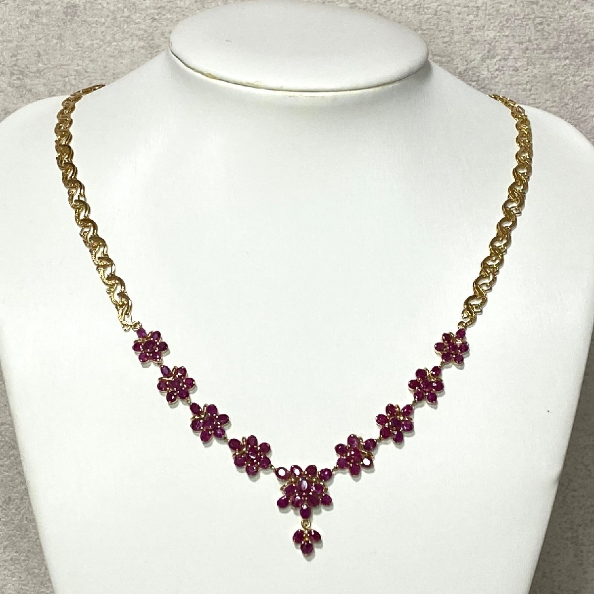 > ☆鑑別書付き K18(18金) 天然コタンダム ルビー ネックレス 長さ約43.5cm 重量約18.7g【中古/USED】