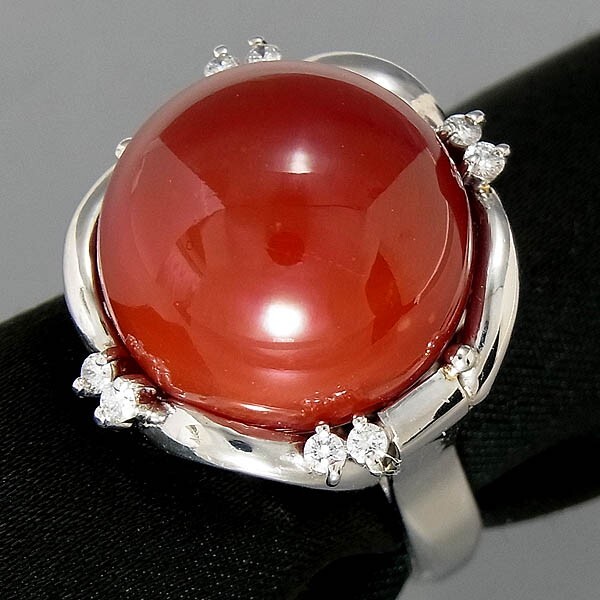 - Pt900 血赤珊瑚指輪 16mm D 0.16ct 15.1g 13号