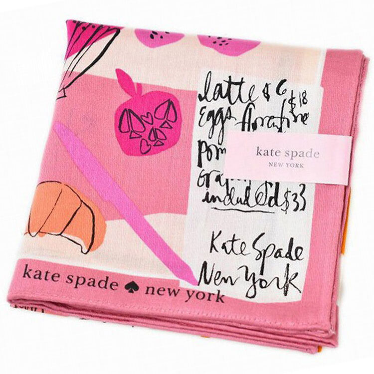 - ハンカチ 女性 レディース ブランド ケイト スペード ニューヨーク 1枚 フラワー 花瓶 プリント ピーチ ピンク