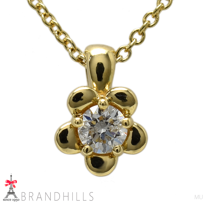 > ダイヤモンド 0.11ct ネックレス 一粒 K18金 750YG イエローゴールド フラワーモチーフ 1.7g 極美品