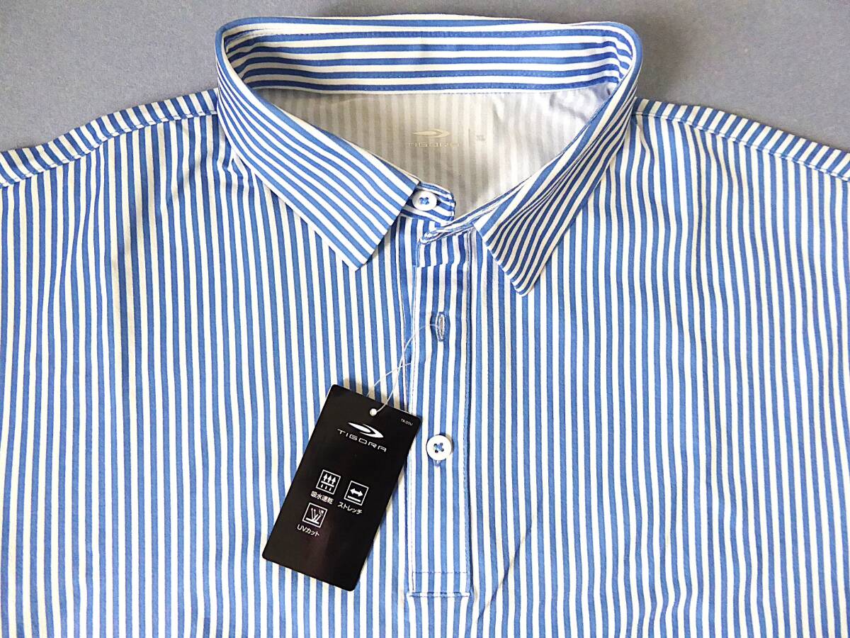 > TIGORA GOLF ティゴラ ゴルフ 吸水速乾 UVカット ストレッチ ストライプ柄 半袖ポロシャツ 2XL 青白 ②
