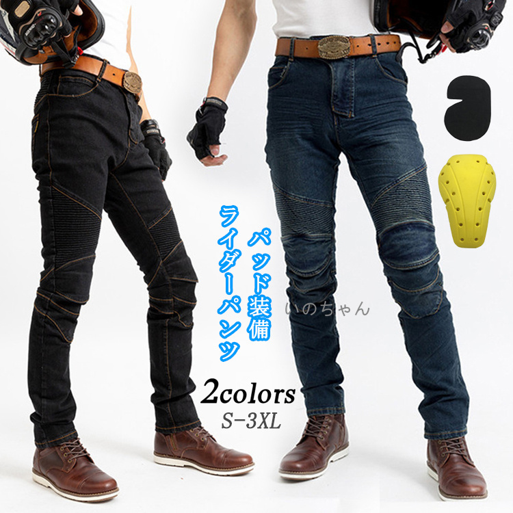 > ライダーパンツ バイクパンツ メンズ デニム プロテクター付き バイクジーンズ転倒防護 膝当て 保護耐久 膝パッド装備S~3XL